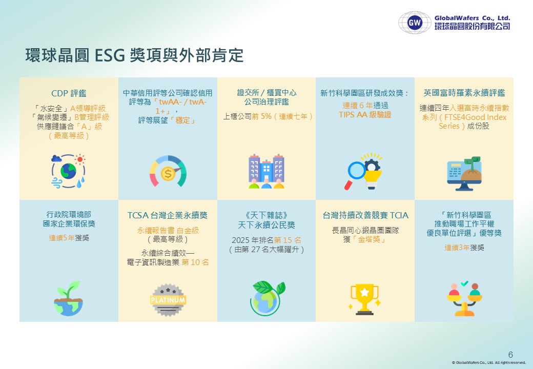 環球晶圓持續以綠色設計與綠色產品為目標,在追求公司獲利同時也致力於永續發展。
