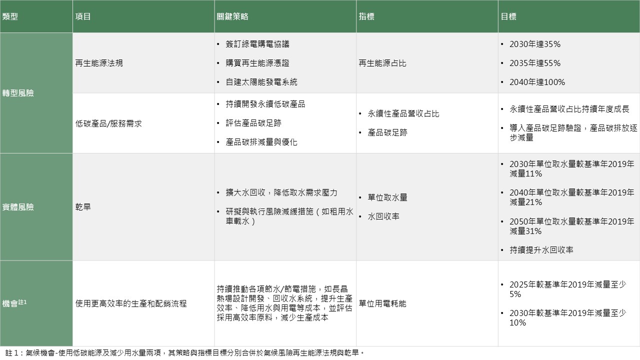 氣候相關風險與機會關鍵策略與指標目標
