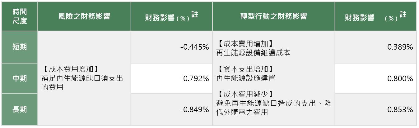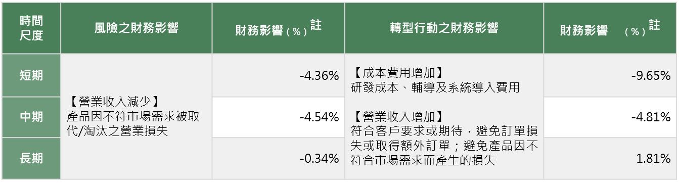 註:為風險/轉型行動之財務評估結果占年營收之比例